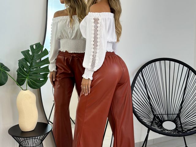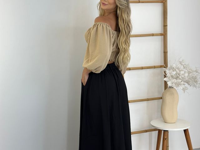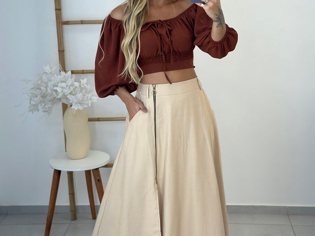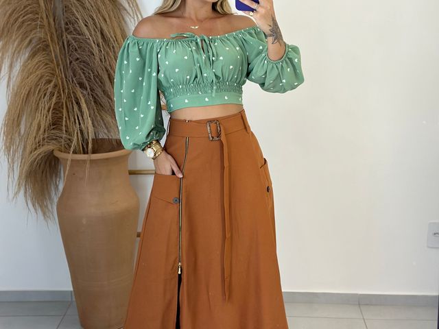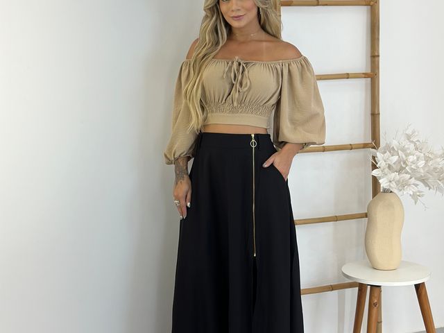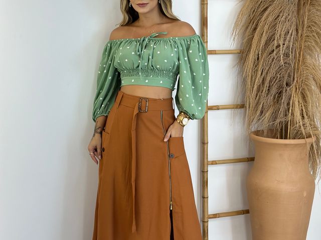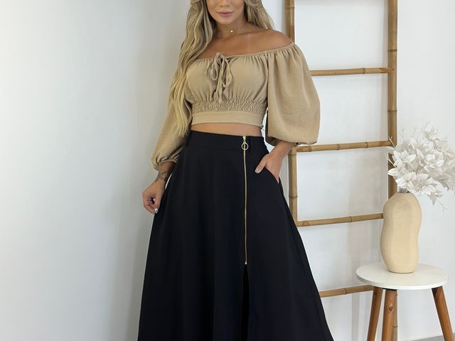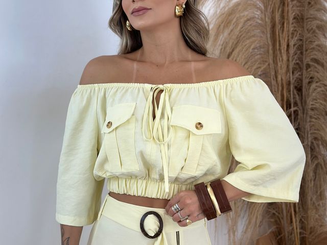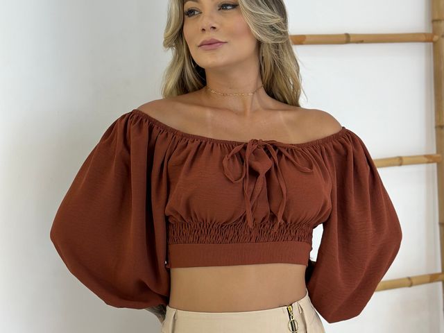 Blusinha Cropped Ombro a Ombro c/ Manga Bufante
