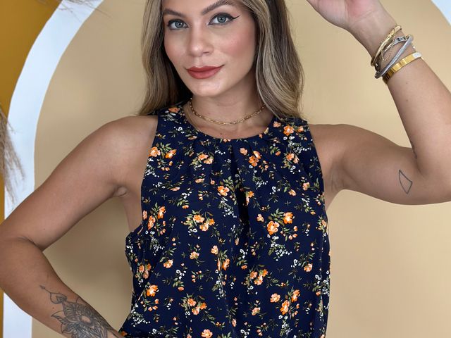 Regata Gola Canoa Estampa Florida Caimento Solto c/ Botão