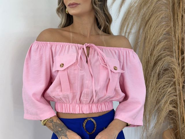 Blusinha Ombro a Ombro c/ Bolso Manga 3/4